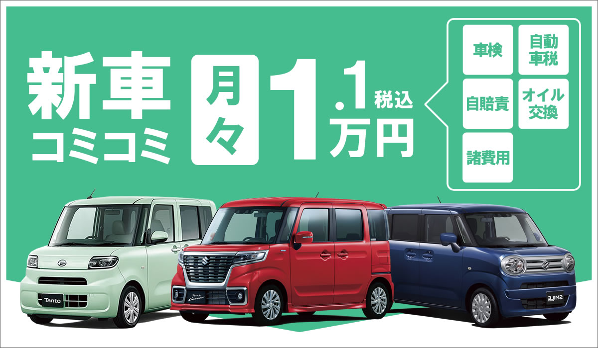 月々定額1.1万円(税込)で新車に乗れる!車検・税金・メンテ代もコミコミ定額!