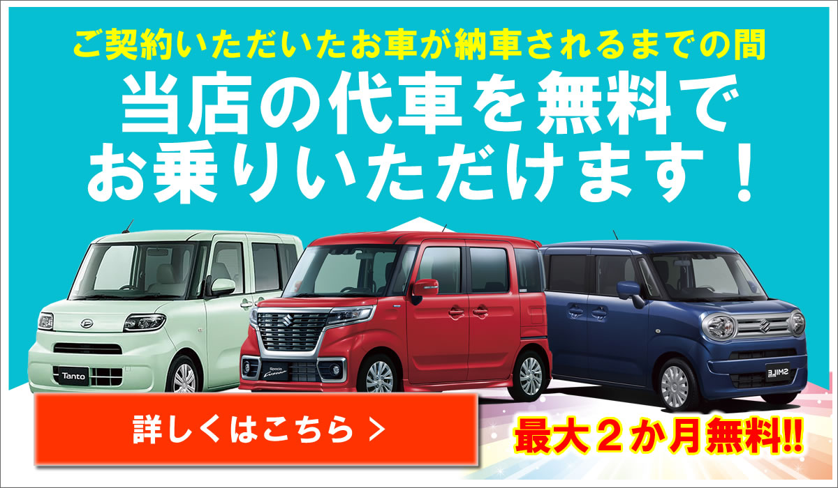 ご契約いただいたお車が納車されるまでの間、当店の代車を無料でお乗りいただけます! 更に!国の認定工場であらゆる整備に対応いたします。